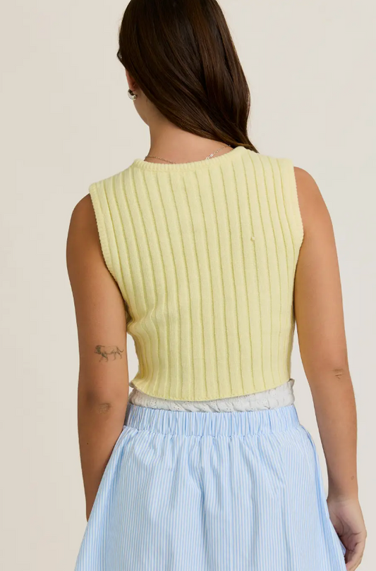 Yellow Scarf Hem Sleeveless Sweater