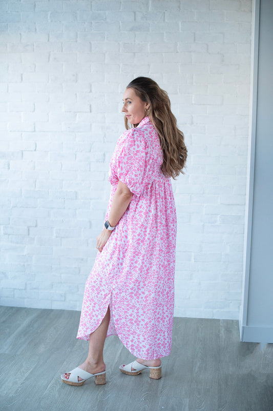 Pink SS Floral Midi Dress