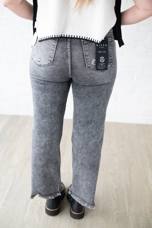 Risen Acid Wash Frayed Black Jeans