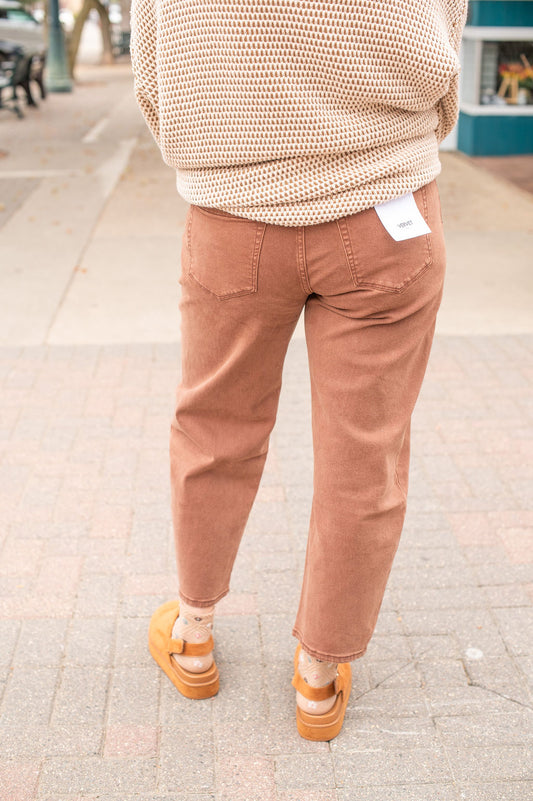 Vervet Brown High Rise Barrel Jeans