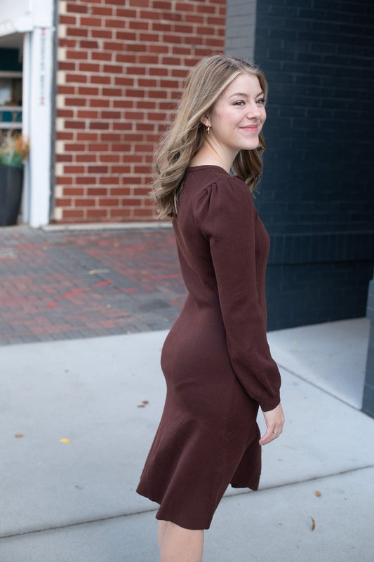 Jodi Walnut Fitted Button Dress