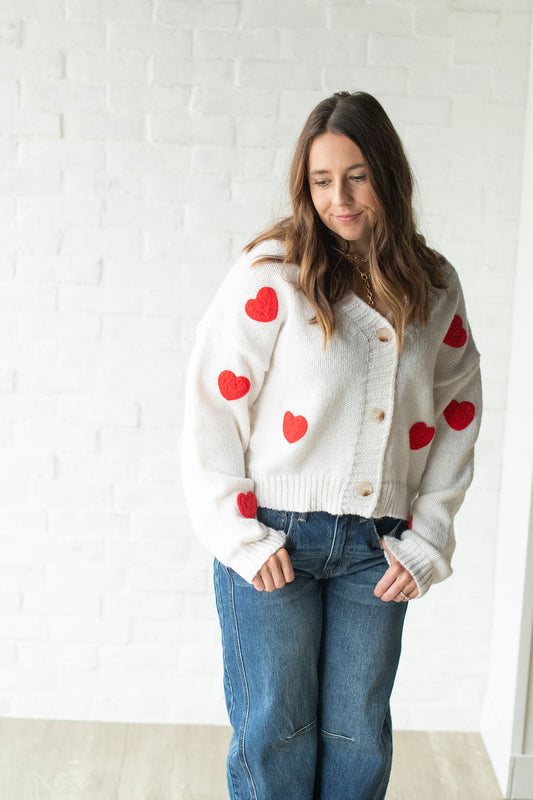 Ivory + Red Heart Button Sweater