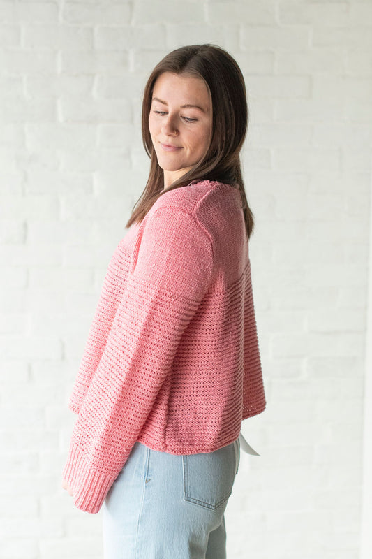 Coral Pink Ribbed Knit Sweater