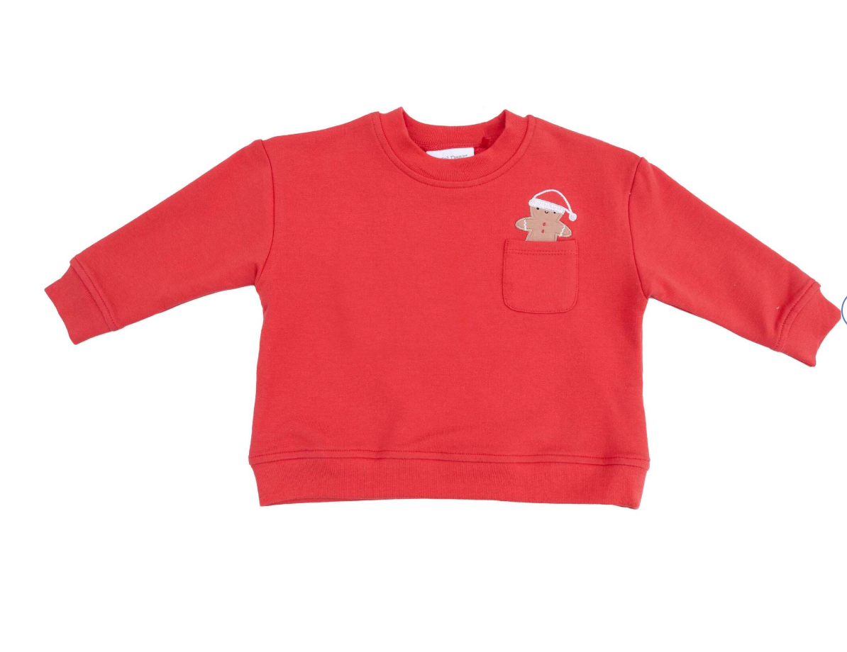 Sweet & Snuggly: Drop Sleeve Sweatshirt with Gingerbread Man Pocket Add a sprinkle of holiday cheer to cozy days with our Drop Sleeve Sweatshirt, featuring a soft fabric and an adorable embroidered gingerbread man peeking from the pocket. With a relaxed drop-shoulder fit, this sweatshirt is perfect for chilly mornings, festive playdates, and all the warm moments in between. Why You’ll Love It: Soft & Cozy Fabric: Keeps baby warm and comfy on crisp days Relaxed Drop Sleeve: Roomy fit for easy movement and layering Gingerbread Man Pocket: A festive, playful touch for holiday fun Everyday Wear: Perfect for pairing with leggings, jeans, or skirts From cookie decorating to storytime snuggles, this sweatshirt brings sweet style and cozy comfort all season long!