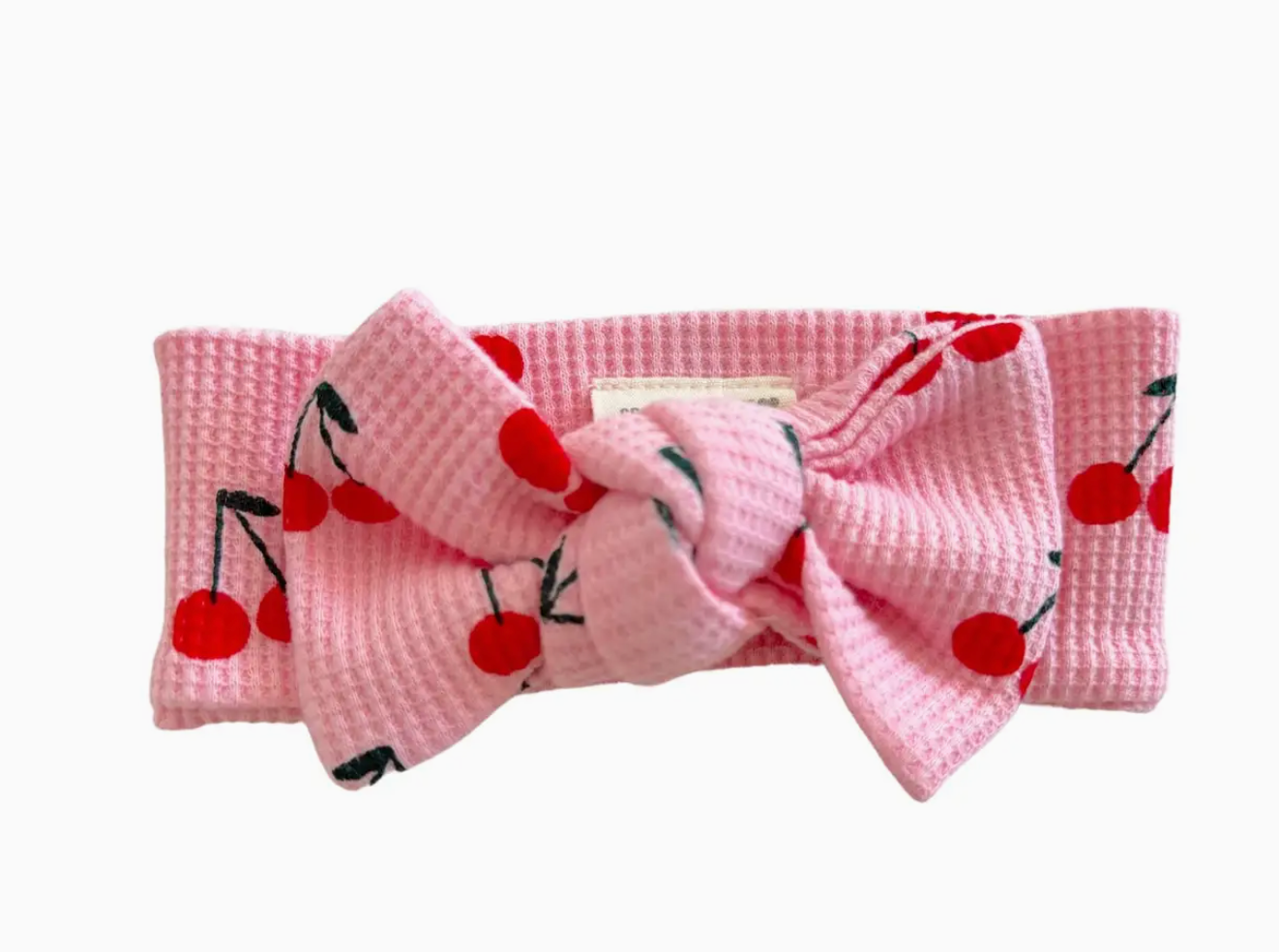 Pink Cherries Waffle Knit Bow