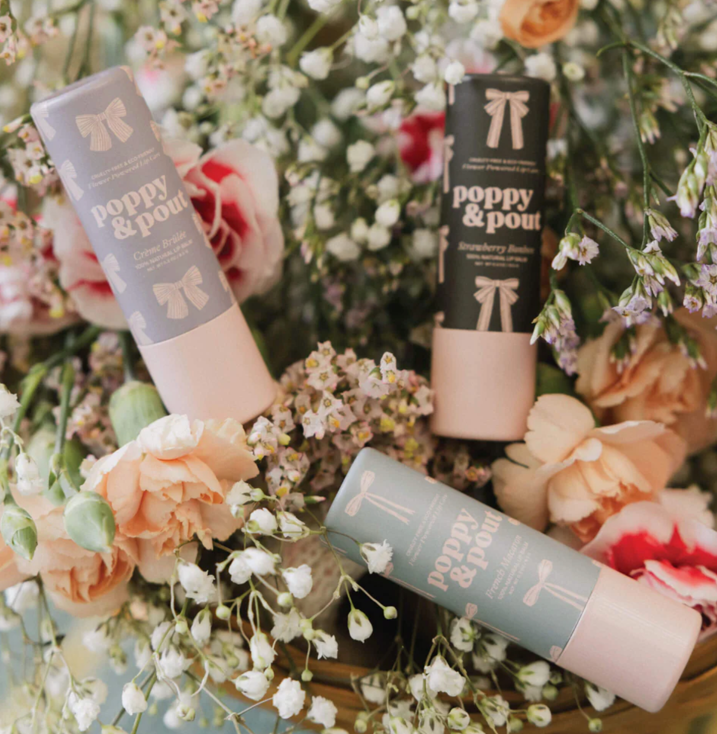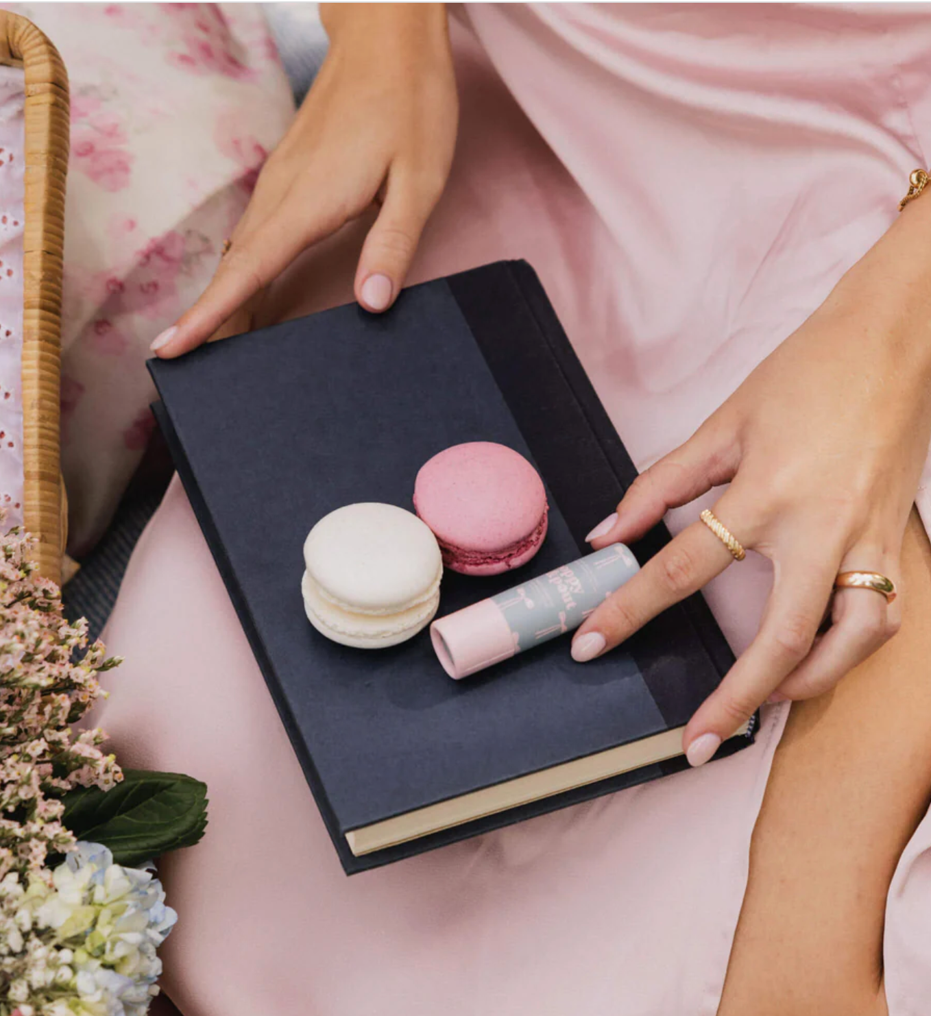 This gift set features 3 coquette inspired lip balms: French Macaron, Strawberry Bonbon, and Crème Brûlée